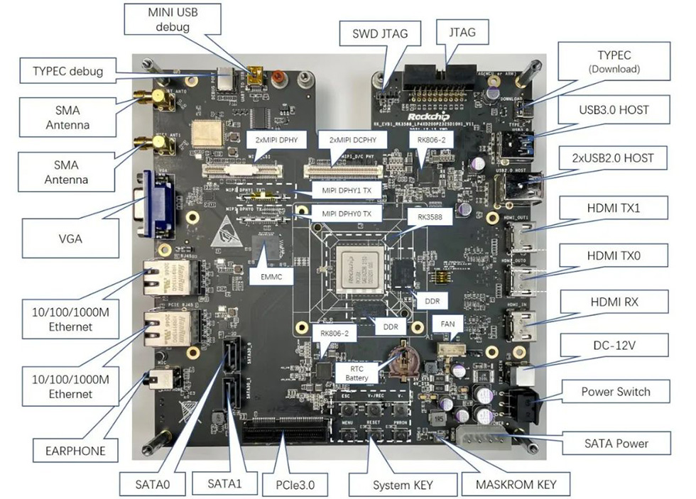 乐动网页版登录入口_乐动(中国)3588 EVB配备的丰富外设接口(如图),适用于各类行业AIoT终端设备。