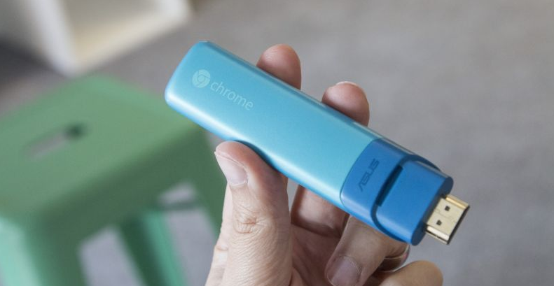 The stick, about the size of a small candy bar and made by Asus,weighs 2.6 ounces and plugs straight into an HDMI slot of any screen that you have going spare. It’s essentially a cheap Chromebook, with the screen and input devices removed, and it provides a neat, portable means of carrying around a computer.
