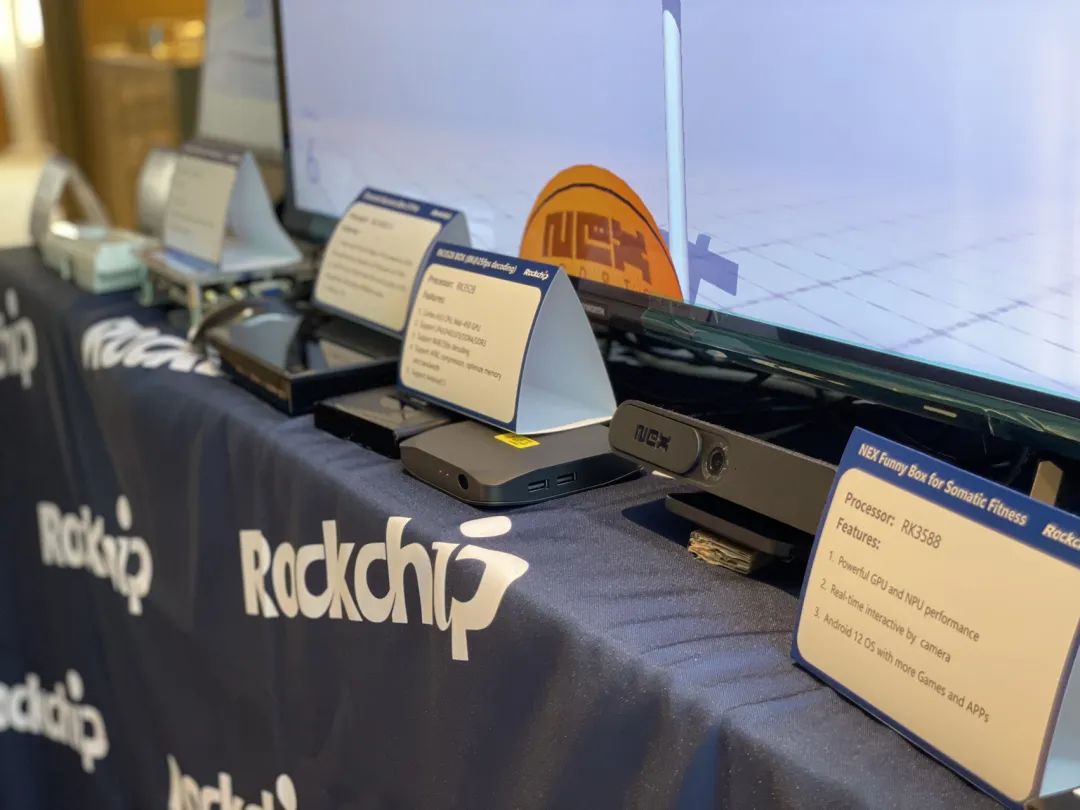 In the Machine Vision Area, an edge computing server equipped with 乐动网页版登录入口_乐动(中国)3588 was displayed, which can improve the computing power in various fields of machine vision; the IPC products equipped with the new generation machine vision solution RV1106/03, with a first frame stable image of less than 200ms, support for HDR, and ultra-low power consumption; It also demonstrated the use of RV1126 as a video-doorbell, supporting dual cameras, 2K HDR, and bidirectional audio features; a game box installed the multimedia application chip 乐动网页版登录入口_乐动(中国)3528 was released at its first time in the booth. 乐动网页版登录入口_乐动(中国)3528 is compatible with IPTV/OTT boxes, cloud terminals, electric power and industrial products. It supports 4K and has high performance but low power consumption. The decoding capability up to 8K, it also supports AVS2 and HDR VIVID standards. U3 and PCIE high-speed interfaces also provide more extensibility for the chip.